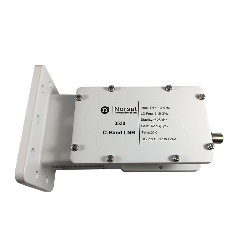 The Norsat 3530N is a single-band C-Band PLL LNB with ±25 kHz LO stability and a typ. 30K noise temperature, designed for precise downlinking from 3.40 to 4.20 GHz. Featuring a 50 Ohm N-type output, CPR229G waveguide input, and rugged IP-rated construction, it ensures stable, high-quality SATCOM reception.