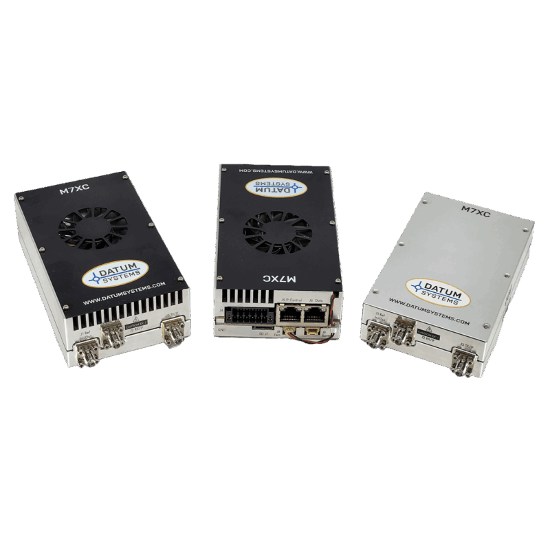 The Datum Systems M7XC is an ultra-compact software-defined satellite modem supporting advanced DVB-S2X and FlexLDPC waveforms for fixed, mobile, and on-the-move SATCOM applications. Operating across 950–2250 MHz, it delivers data rates up to 565.84 Mbps with modulation up to 256APSK. Designed as a common hardware platform for hub or remote use, the M7XC supports ACM, Smart Carrier Cancelling, TRANSEC AES-256 encryption, and DSSS in an extremely small, low-power form factor.