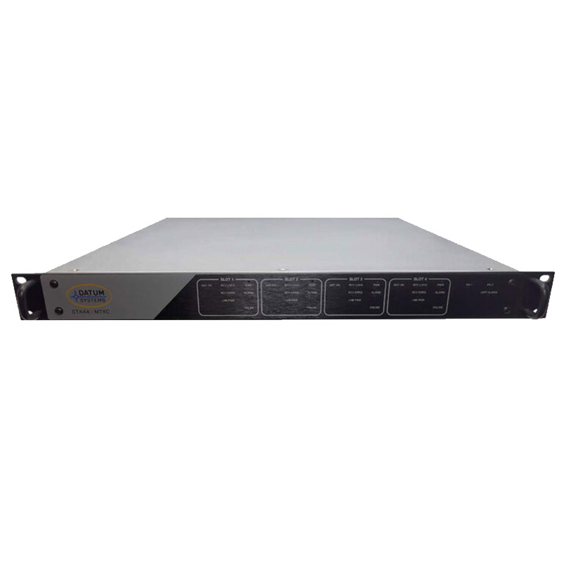The Datum Systems STAX-4 is a 1RU high-density multi-modem chassis designed for hub and teleport environments requiring maximum scalability and redundancy. Supporting up to four M7XC software-defined modems, the STAX-4 enables up to 4 high-speed modulators and 64 demodulators in a single rack-mount platform. With redundant load-sharing power supplies, external 10/50 MHz reference input, and full compatibility with all M7XC waveforms, STAX-4 delivers exceptional flexibility and reliability for professional SATCOM networks.