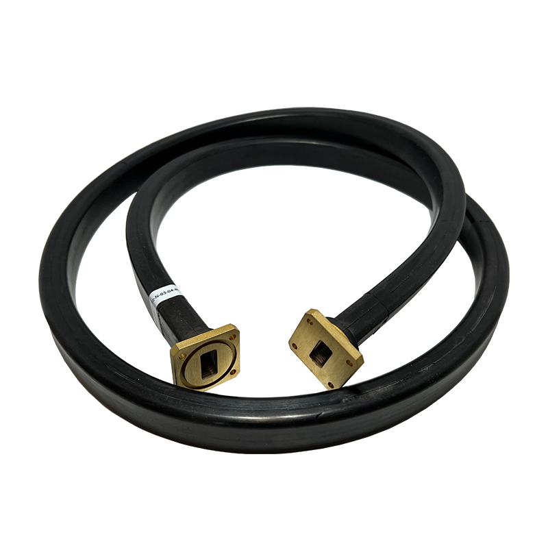 The ESAT-FW-75-72-N-03-04-R is a 72-inch WR75 flexible and twistable waveguide designed for 10.0–15.0 GHz Ku-band uplink applications. Built with brass Cover Flat - Square and Cover Grooved - Square flanges and protected by a neoprene rubber jacket, this assembly offers reliable E-plane and H-plane flexibility with stable electrical performance for Ku-band BUC-to-feed integrations and SATCOM ground stations.